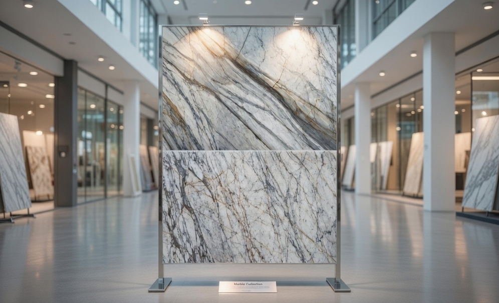Каждый слэб мрамора уникален, благодаря природным узорам и цветовым вариациям.